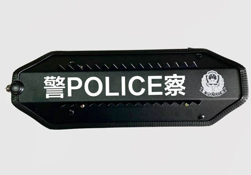 铁骑护臂盾(专利产品) 1、钨钢破窗器 护臂盾前方配有钨钢破窗器,可击碎车窗玻璃和室内的钢化玻璃。 2、防抢倒刺 护臂盾表面设有防抢倒刺,可以有效防止犯罪嫌疑人抢夺,并且在面对持刀肇事者劈砍时可以将刀具卡主起到夺刀的效果。
