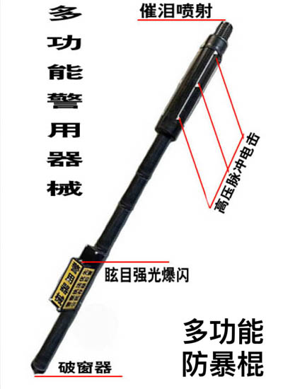 多功能防暴棍延长手臂和增加冲击力的基础上,充分利用警棍的结构优势和声、光、电技术,不断开发出既能“攻击、防护”,“电击、强光、催泪剂”等多功能警棍。在非致命性的单警装备是非常多样化的。