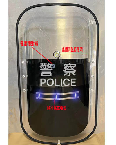 法式多功能报警盾牌 规格:500x1000mm, 厚度:3.5 重量:2.5kg, 材质: 优质:PC材料 合金防水眩目灯,高频闪,