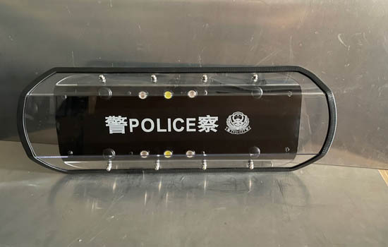PC多功能臂盾(双层) 材质:进口PC材料 钨钢破窗攻击头! 规格:长600cmm 宽28cmm 厚4.0,重量:1.6kg~2.1kg 加强型警示排灯由6颗红、蓝二种LED灯组成,具有交替闪烁警示功能;