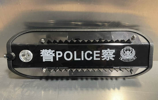 护臂盾表面设有防抢倒刺,可以有效防止犯罪嫌疑人抢夺,并且在面对持刀肇事者劈砍时可以将刀具卡主起到夺刀的效果。